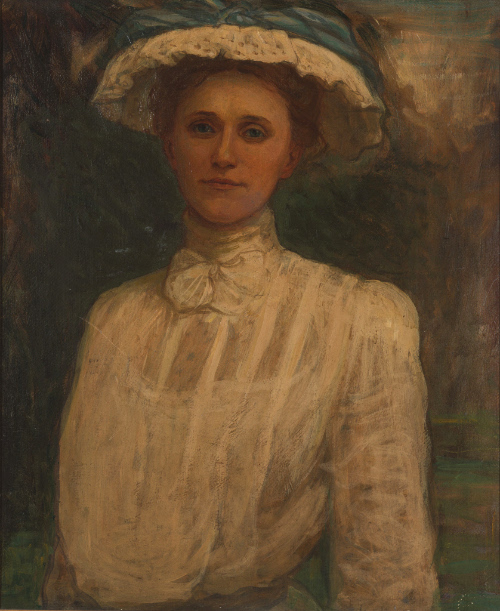 Label TextIllustrator and muralist Violet Oakley created this portrait of her sister Hester, a talented writer who died in 1905 at age 34. On December 22, 1898, The Ambler (PA) Gazette described the sisters: Miss Hester Oakley...and Mr. Ward, of New York City, were united in marriage... Miss Violet Oakley, a sister of the bride, was maid of honor. The bride is a novelist of some distinction and her sister has gained standing as an artist.