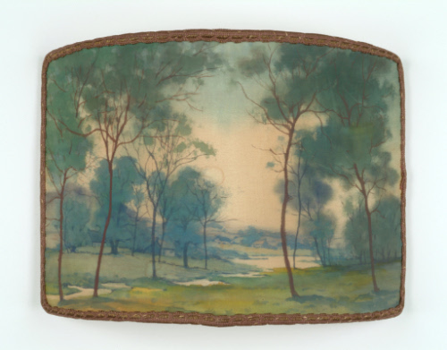 Label TextThis lampshade was hand-painted by Marianna Sloan and resembles her pastoral paintings from around 1907.