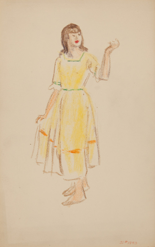 Label TextAfter attending a performance by the dance-mime Angna Enters (who had been one of Sloan's students at the Art Students League), the artist invited her to pose. This session resulted in several drawings and the etching "Contre Danse." Most of Sloan's other images of Enters were developed from memory and sketches made of her performing.