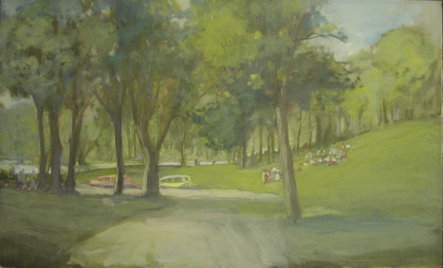 Label TextWith deft strokes, Sloan captures strollers enjoying an afternoon in a park.