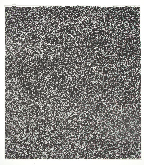 Label TextThese prints originated with Bruce Conner's late 1960s felt-pen drawings, exercises that were both conceptual and physical in nature. The drawings were photographed, transferred, and printed, capturing the differences in the darkness of the pen on paper.