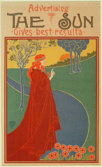 Label TextNoting the success of poster campaigns by national magazines, some newspapers also printed posters. The newspaper publishers, however, rarely employed artists working in modern styles. New York’s Morning Journal was an exception, hiring the English-born Louis Rhead to execute a series of posters in 1895-96. Rhead worked in an Art Nouveau style that emphasized flat color and pattern.Louis John Rhead