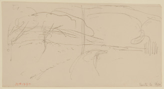 Label TextWhile spending their summers in Santa Fe, the Sloans and their friends frequently took car trips to visit nearby towns and pueblos, to attend Native American ceremonial dances, and to see the striking scenery. On these outings, Sloan made many pencil sketches, some of which resulted in finished paintings and etchings.