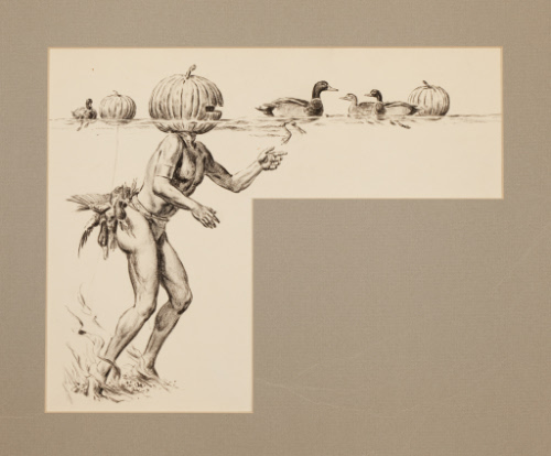 Famous duck hunting trick of American Indians was to hide beneath pumpkins and pull the birds under