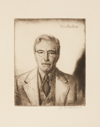 English painter and etcher. During the 1930s and 1940s he was celebrated as a portraitist. Today he is best known for his small etched prints of beautiful, idealized women - many of them modelled by his first and second wives.